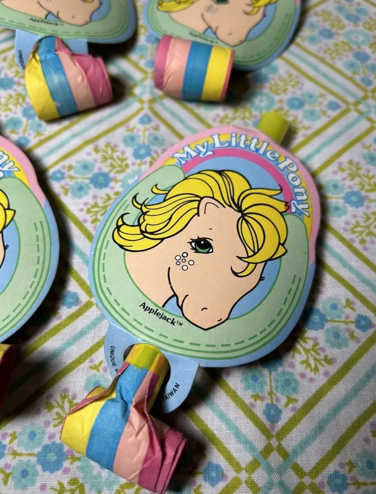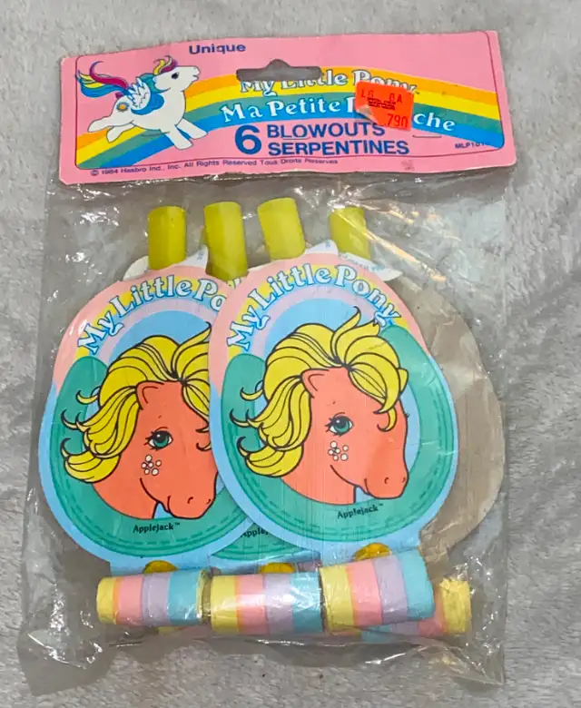 Sold individually, as well as featured as an item in an "Accessory Pack", which contained four of the Applejack party favors, as well as four Firefly Candy Cups, four Moondancer Loot Bags, and four Starshine Party Hats