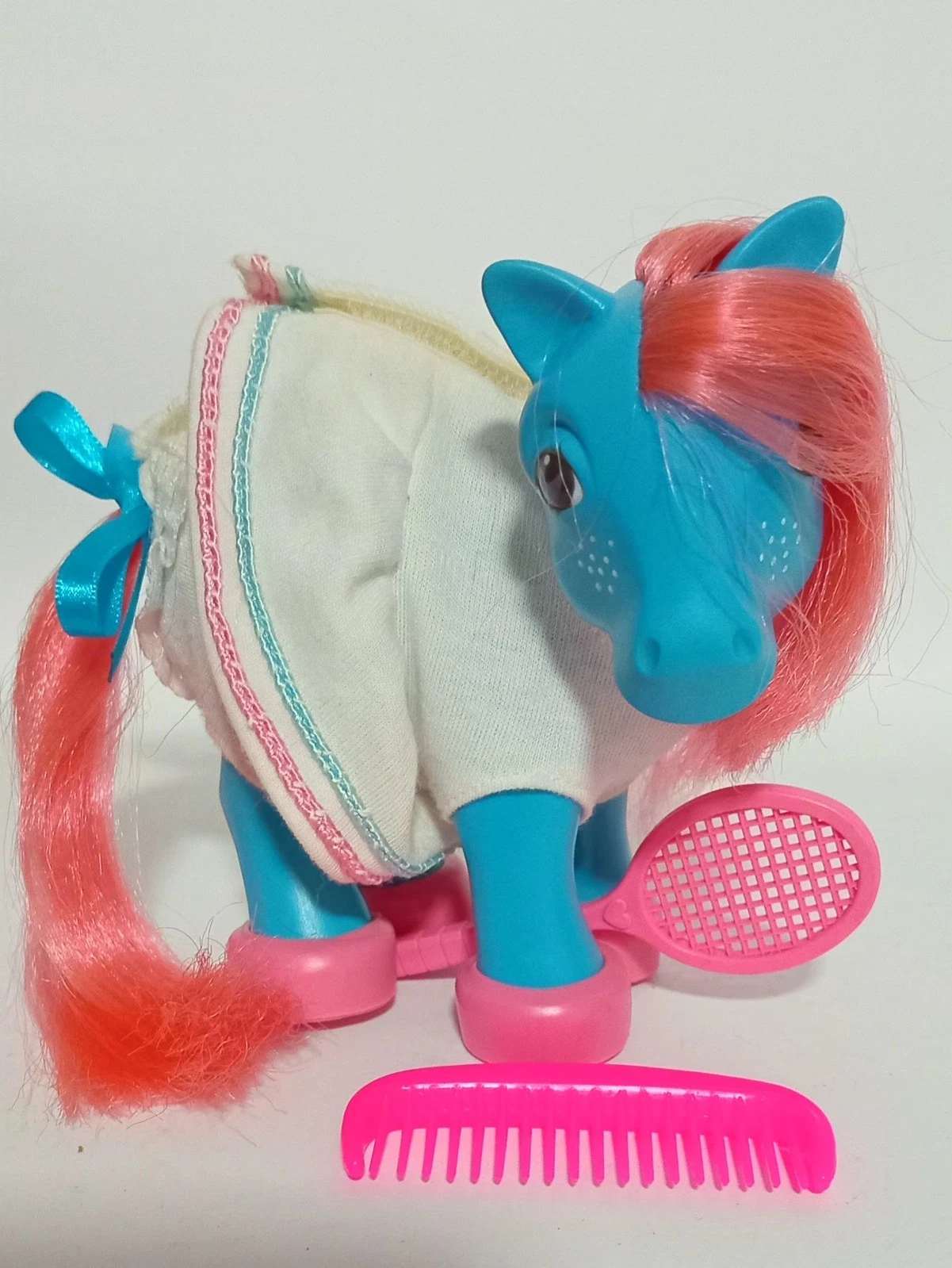She was part of a set called Circo de Cavalinhos, which sold ponies along with Pony Wear outfits. Her outfit was tennis themed!