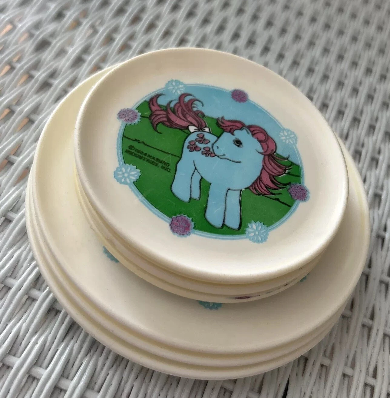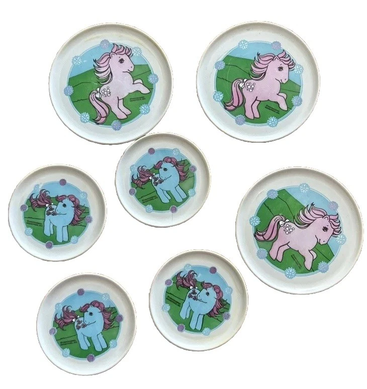 Bow Tie & Cotton Candy PlatesCaden DickinsonMay 141 min readCHARACTER(S): Bow Tie, Cotton Candy YEAR OF PRODUCTION: 1984PLACE OF PRODUCTION: ?MANUFACTURING COMPANY: ?TYPICAL PRICE ONLINE: ?OTHER COMMENTS/INFO:Part of a tea set - Set also included cups and a pitcherUnclear how many individual pieces were sold in the setThe plates are by far the easiest pieces of the tea set to find pictures for Image sources:My Little WikieBayeBayeBayEtsy