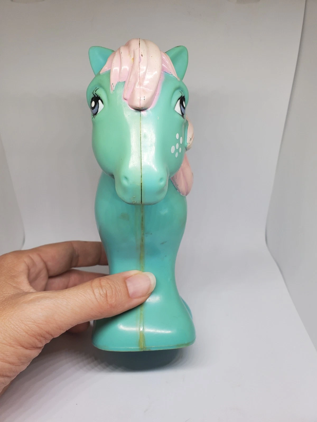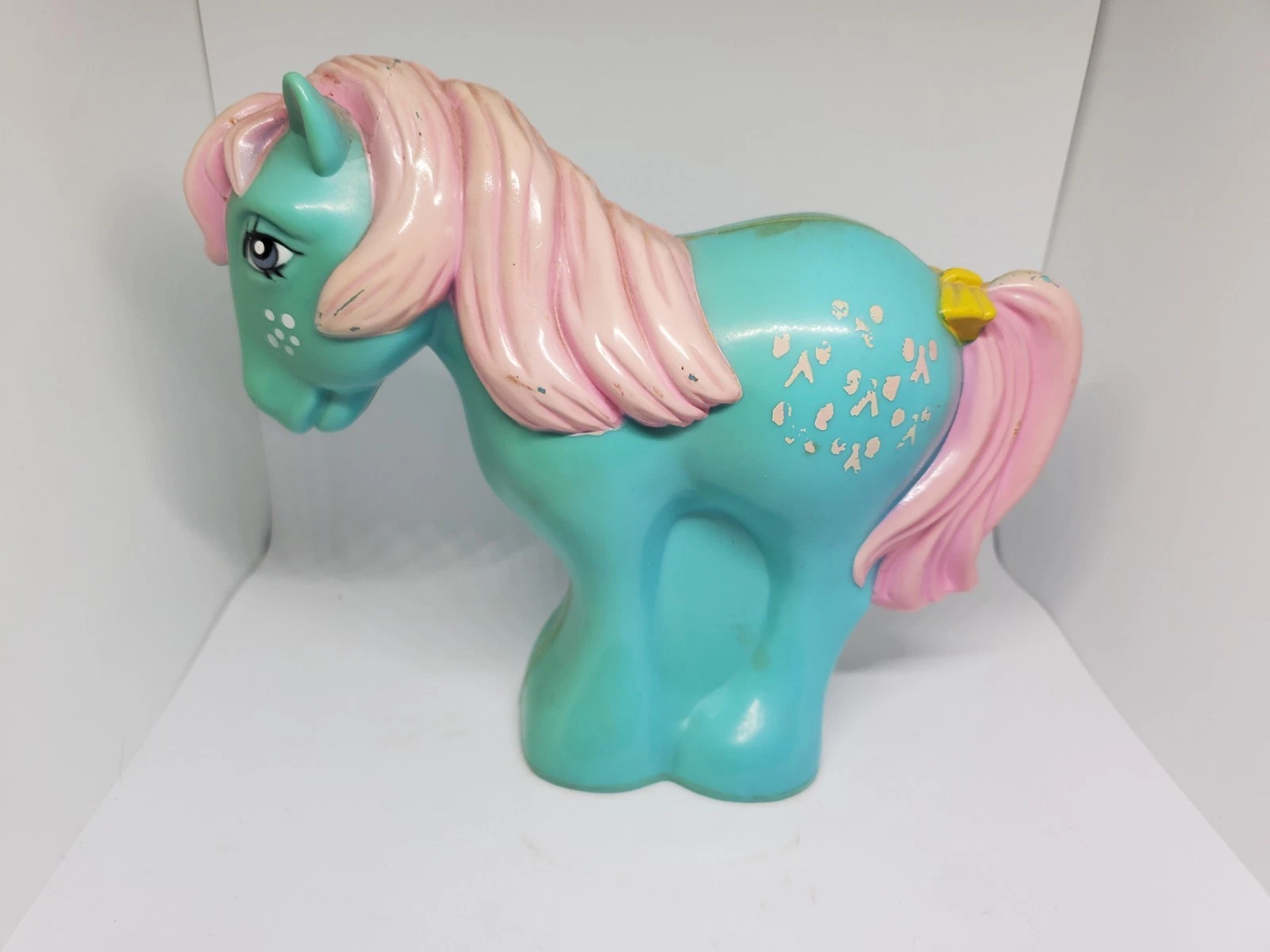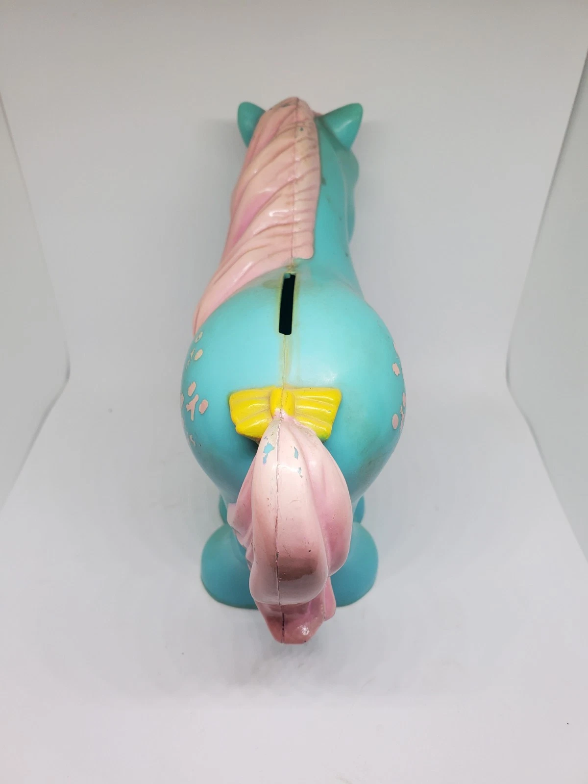 The Bow Tie piggy bank featured on My Little Wiki is more of a bluish green, but I've seen ones that have her accurate fur color.