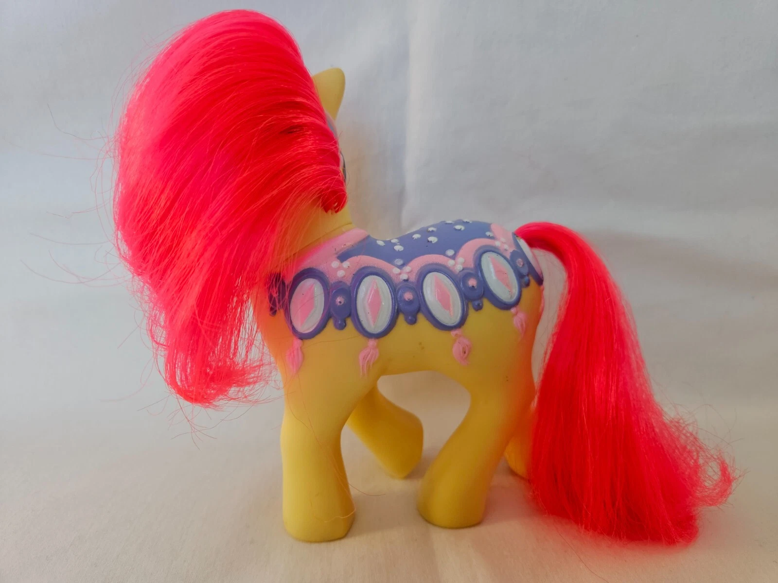 From the Merry Go Round Line, where the ponies had elaborate molded saddles instead of cutie marks. All the Merry Go Round ponies were earth ponies.