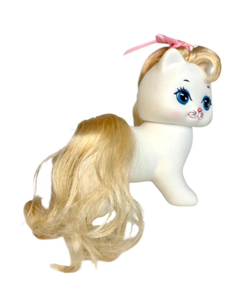 1990 Mattel Catalogue Blurb: Welcome to the Little Pretty world! It's a loving, nurturing place where Little Pretty kitties and puppies have long, beautiful hair that girls love to comb and style! Some kitties and puppies have special beauty marks, and nails that polish up bright red. Others smell as sweet as can be. Some come in an ornament to hang on a Christmas tree! But the one thing they all share... none of these adorable kitties and puppies will have long to wait before loving little girls will collect them and give them all a happy home!