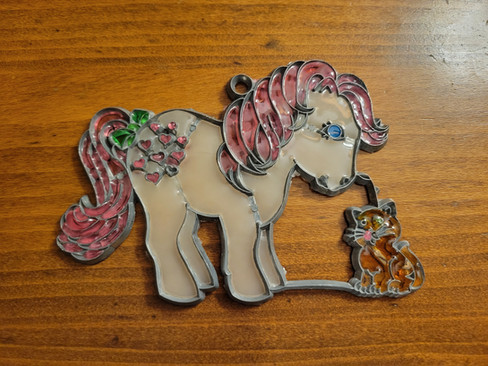 There is also another stained glass G1 kit, featuring Surprise and Sweet Stuff with the MLP logo, which appears to be manufactured by a different company.