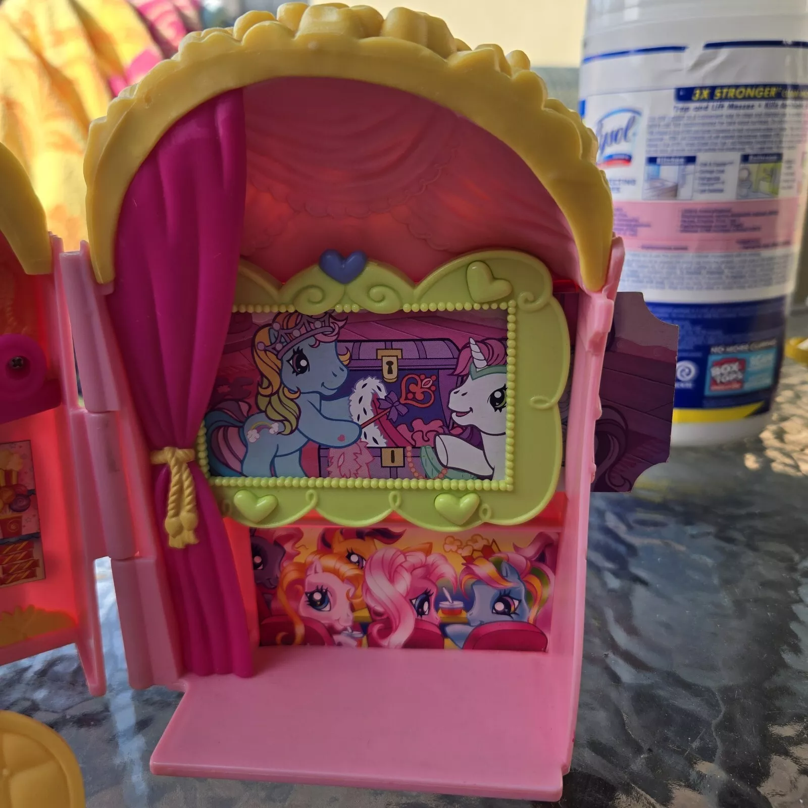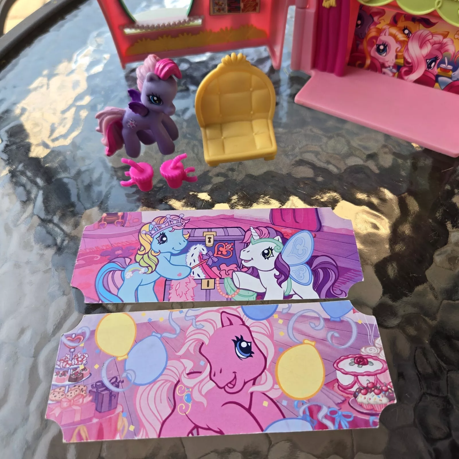 Came with a Starsong figure, a little chair, two drink accessories, and 2 paper tickets that you could slide into the fake TV screen, so that they would "become" the movie