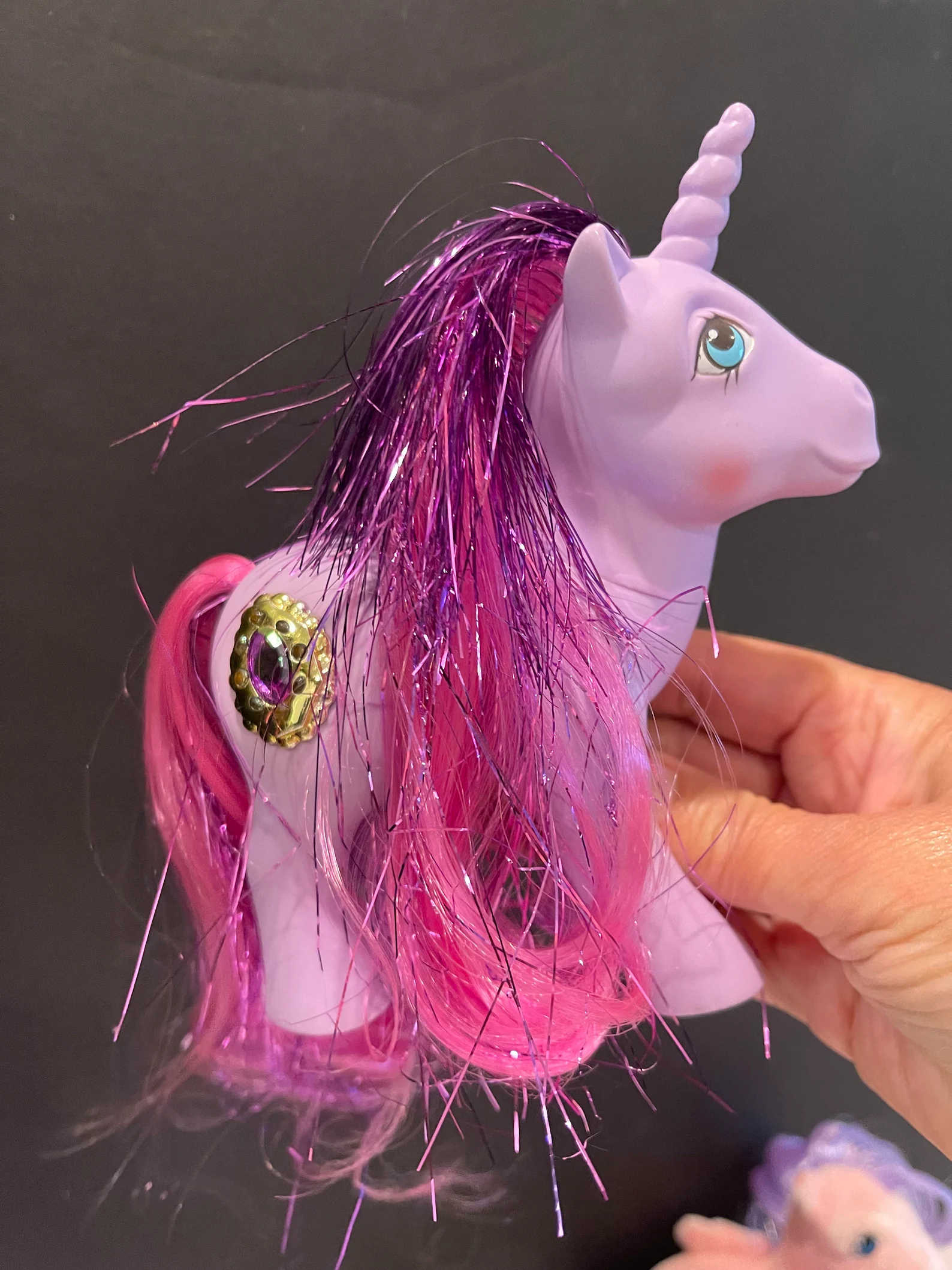 Year 6 Princess Ponies have a forelock of hair at the front of their manes that is made entirely of tinsel, and is meant to be pulled back and held in place by their crown clips