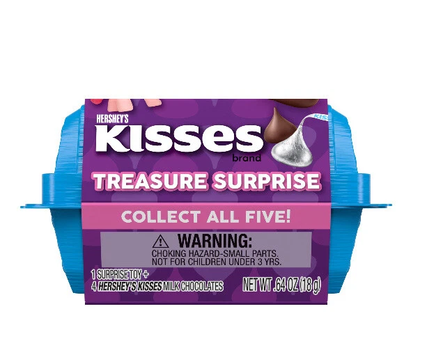 Sold as a mystery box figure with a pack of Hershey's kisses