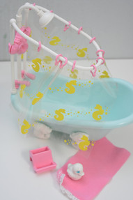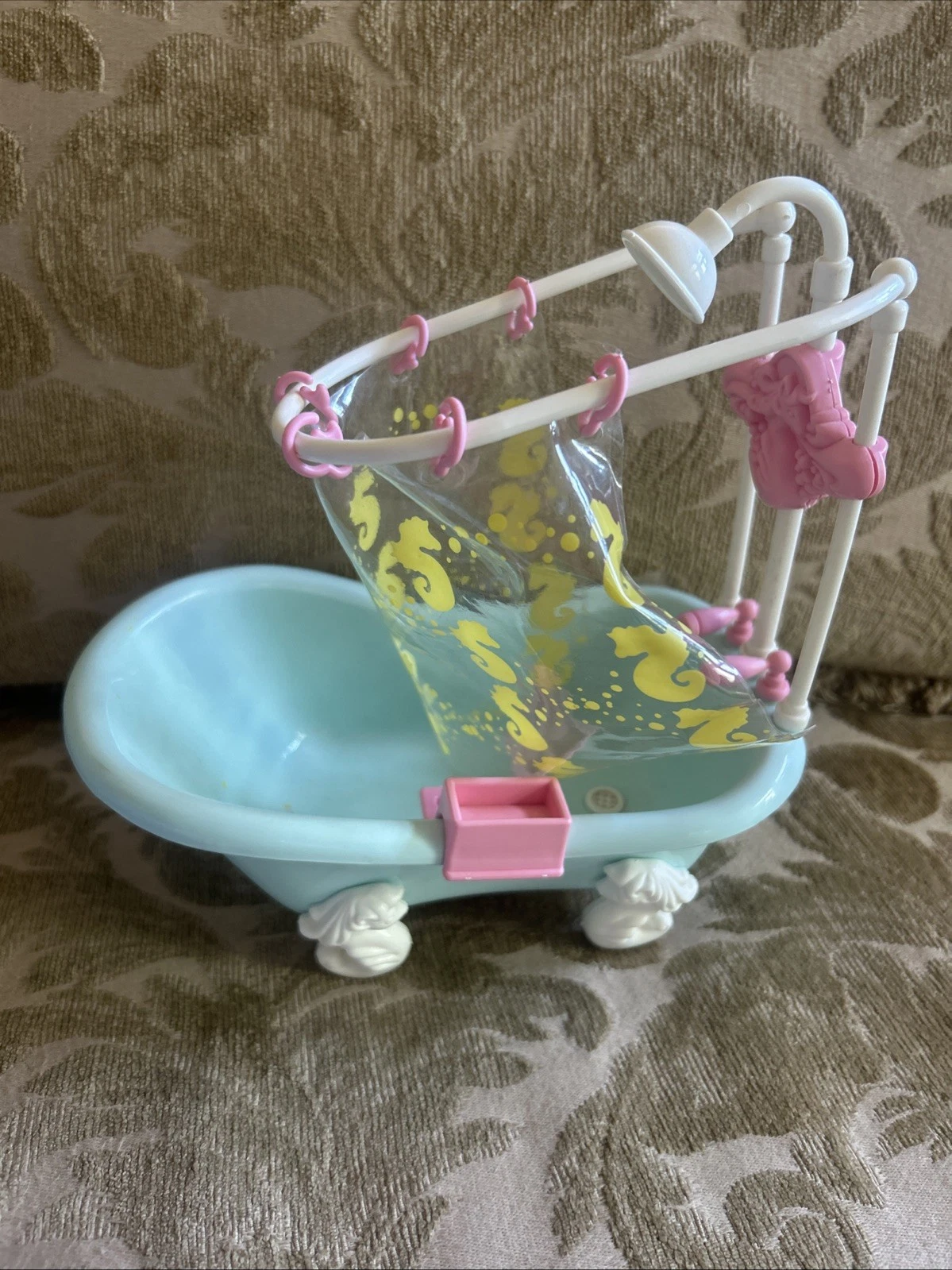 The tub legs look like seaponies & the pattern on the curtain features seaponies as well. The little shower support thingy is also seapony shaped.