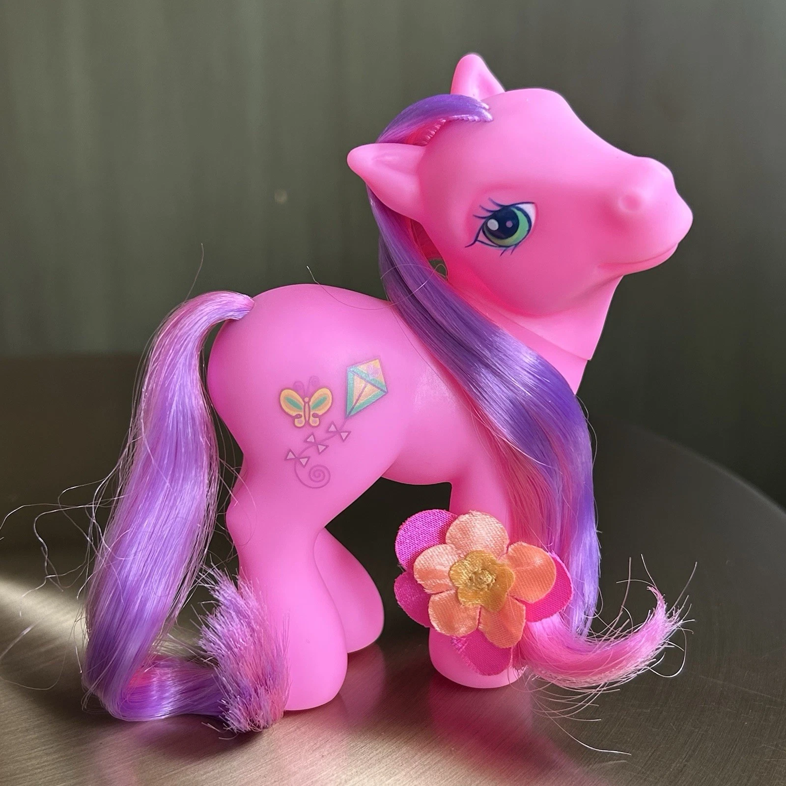 Her first release was in 2004 as a single in the Perfectly Pony series - this series combined G3s only existing gimmicks at the time - Tinsel hair and multicolored hair