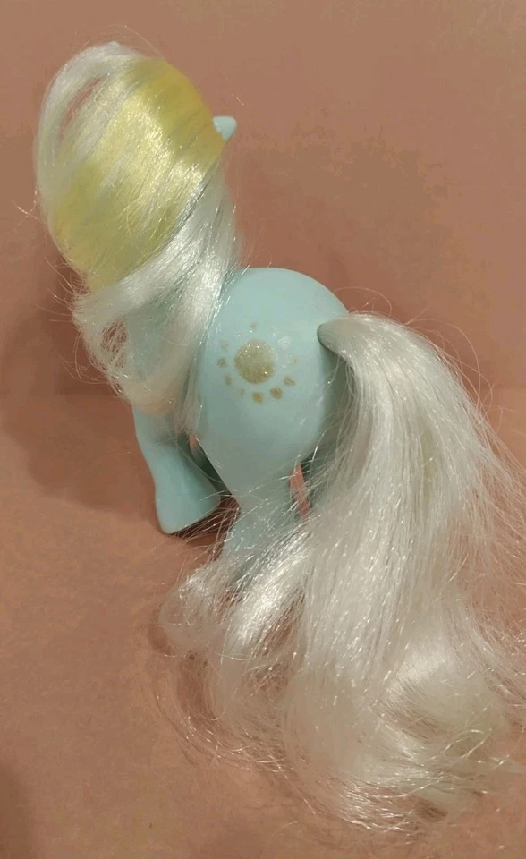 Media: She appeared in the UK MLP Comics, but other than that her only appearances were in picture books. Her US backcard writes: Sunbeam had a wonderful idea. "It's time to have a party for all my friends," she thought. "I'll invite the sun, the clouds, the rainbow, and all of pony land. It will be a very special party." Everyone came. The ponies feasted on wonderful food and danced until dark. Then the wind carried Firefly, Sunbeam, and Moondancer high above the castle. Soon beautiful colors danced across the sky - the fireworks had begun! All the ponies cheered and stamped their hoofs with glee. They had never seen anything like it. Sunbeam's party was a great success!