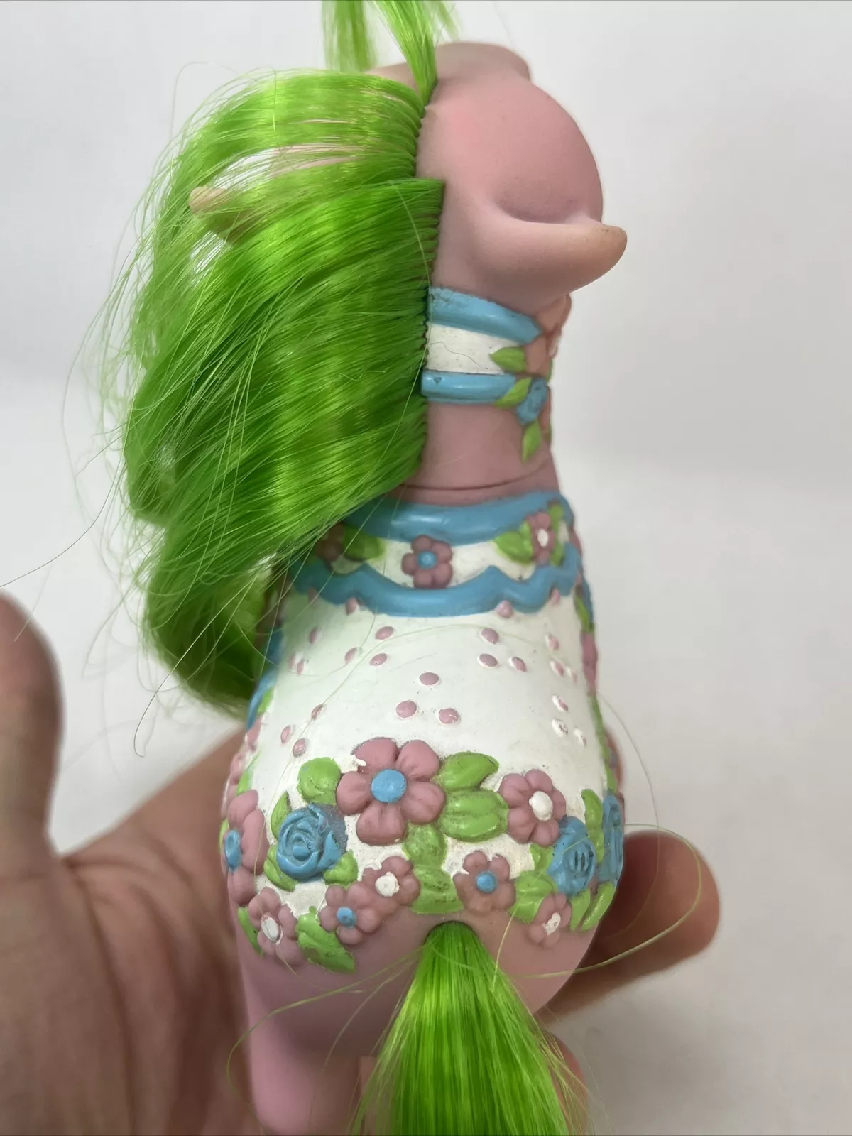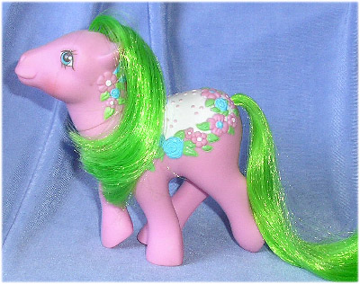 From the Merry Go Round Line, where the ponies had elaborate molded saddles instead of cutie marks. All the Merry Go Round ponies were earth ponies.